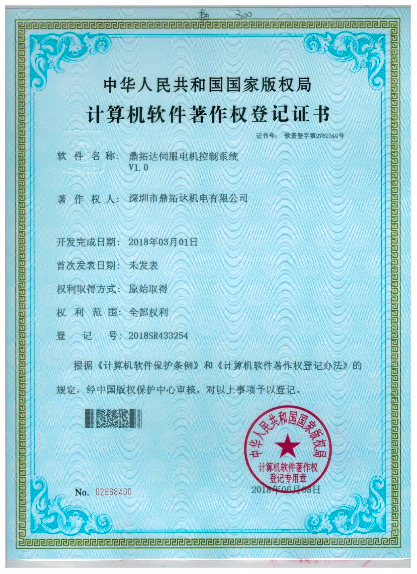 首页->产品认证->鼎拓达伺服电机控制系统V1.0
