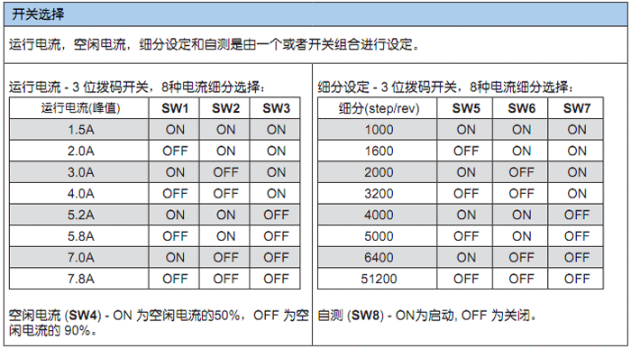• 8档电流, 拨码开关选择