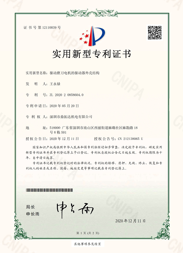 首页->产品认证->驱动磨刀电机的驱动器外壳结构