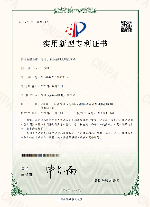 首页->产品认证->运用于油压泵的无刷驱动器